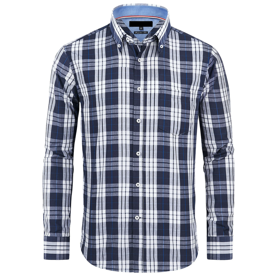 Chemise à Carreaux pour Homme - Chemise à Carreaux Élégante avec Inserts Unis au Col et aux Poignets