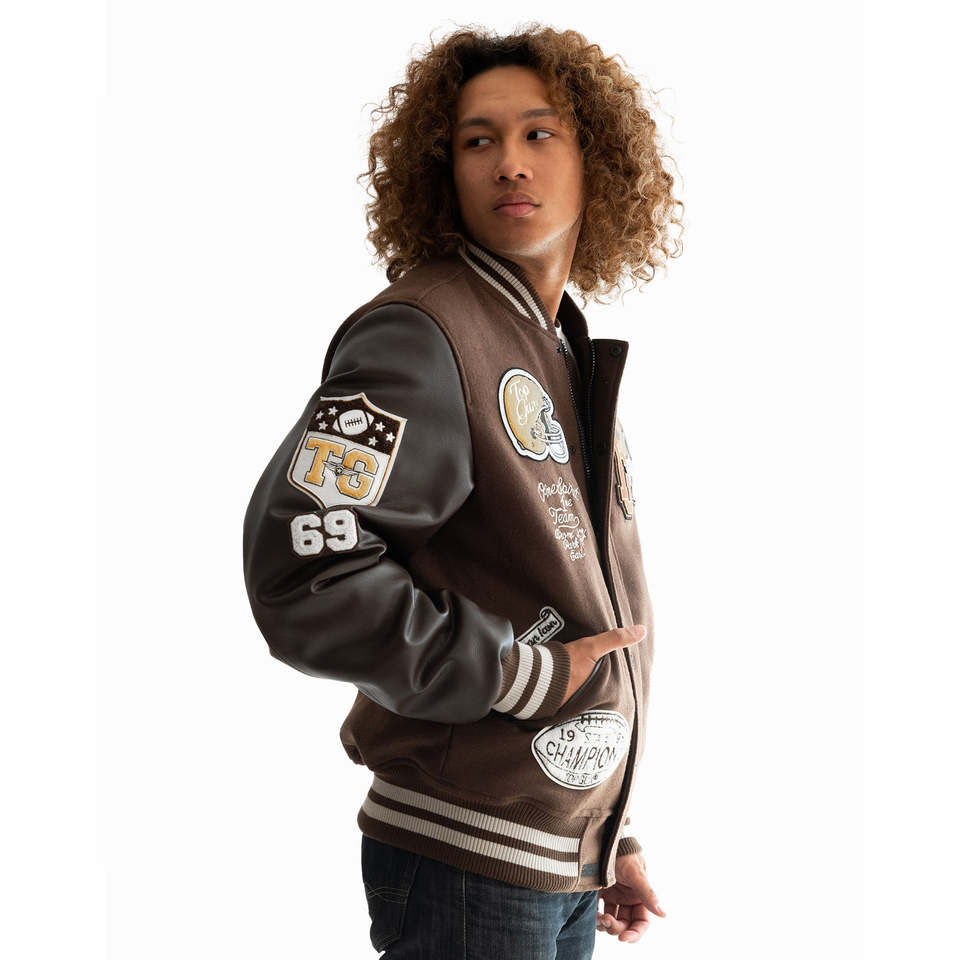 Veste bomber d'hiver en coton 100% de haute qualité pour hommes avec logo brodé personnalisé OEM, col montant, logo sur le devant