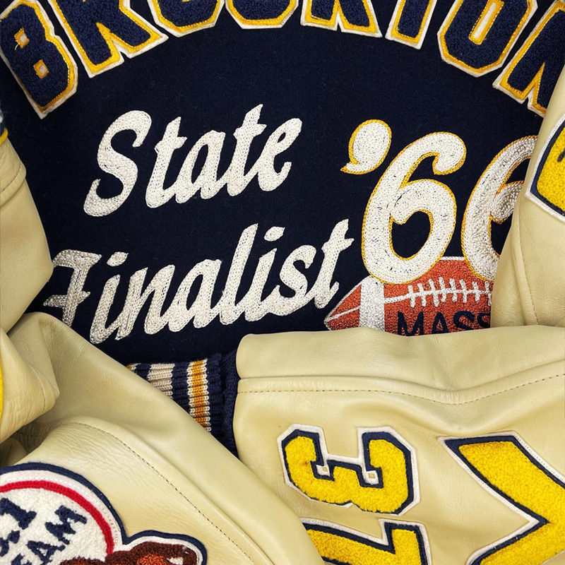Blousons bombardiers brodés avec logo personnalisé OEM Blouson rétro de baseball Letterman à manches en cuir pour hommes