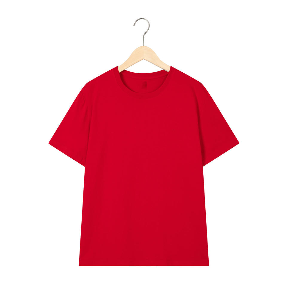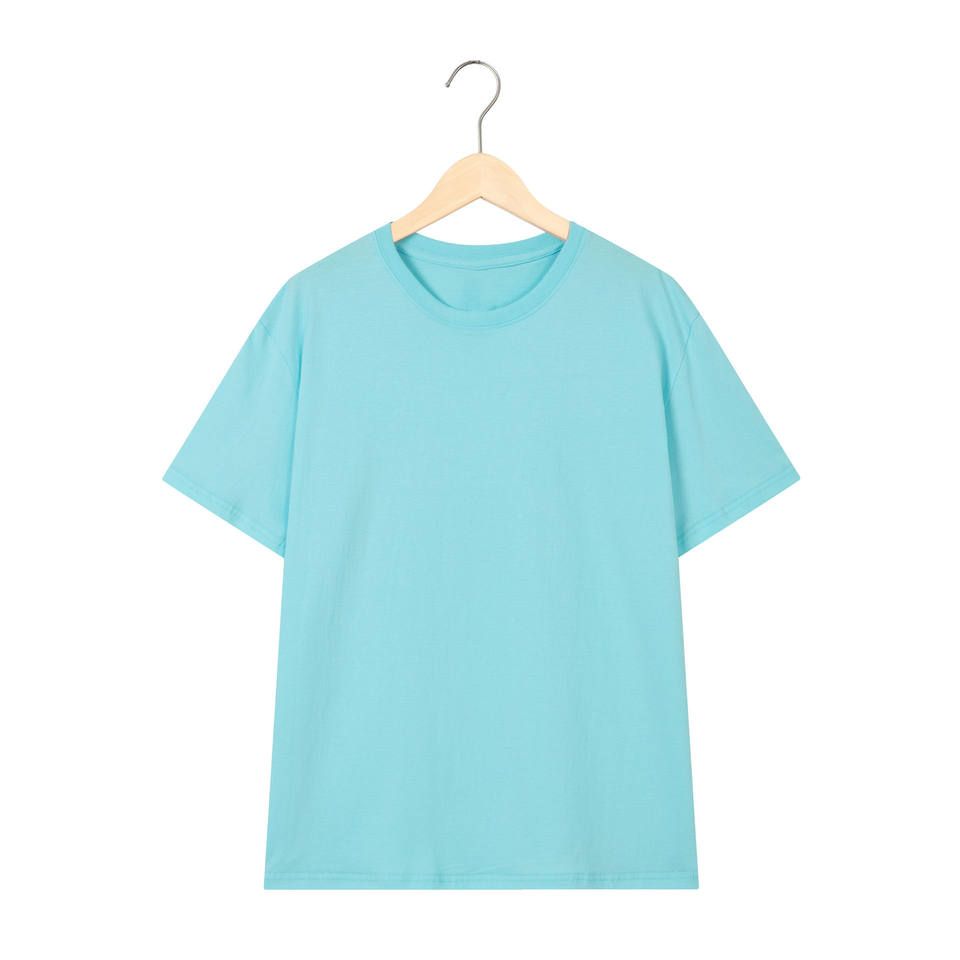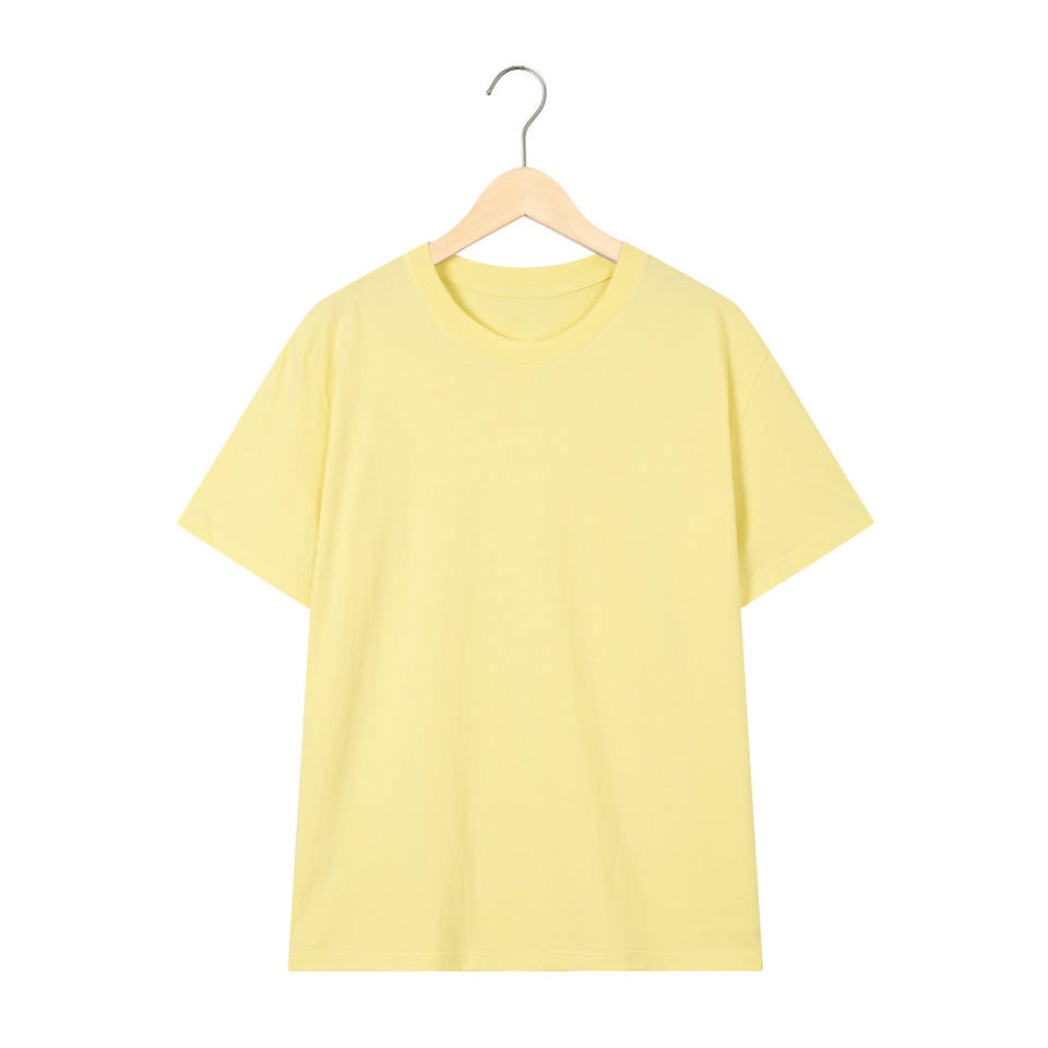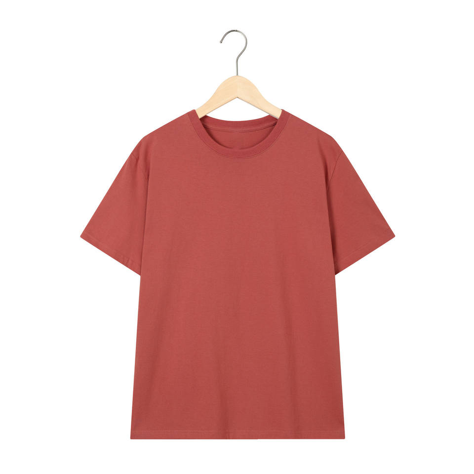 T-shirt pour homme en coton pur, couleur unie, col ample, tissu tricoté, 205g, été, logo personnalisé OEM, broderie, design imprimé