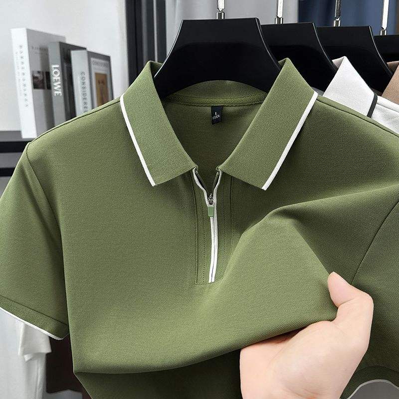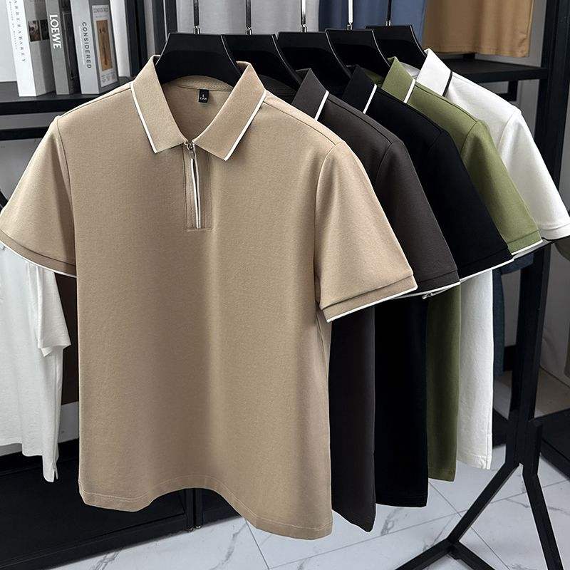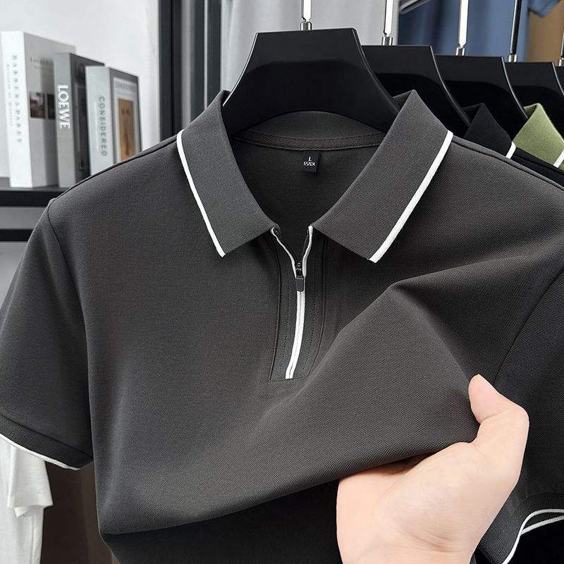 Chemise Homme Tricotée Unie à Manches Courtes, Coupe Ample, Col Revers Rétro Haut de Gamme, Personnalisable avec Logo Brodé ou Imprimé OEM