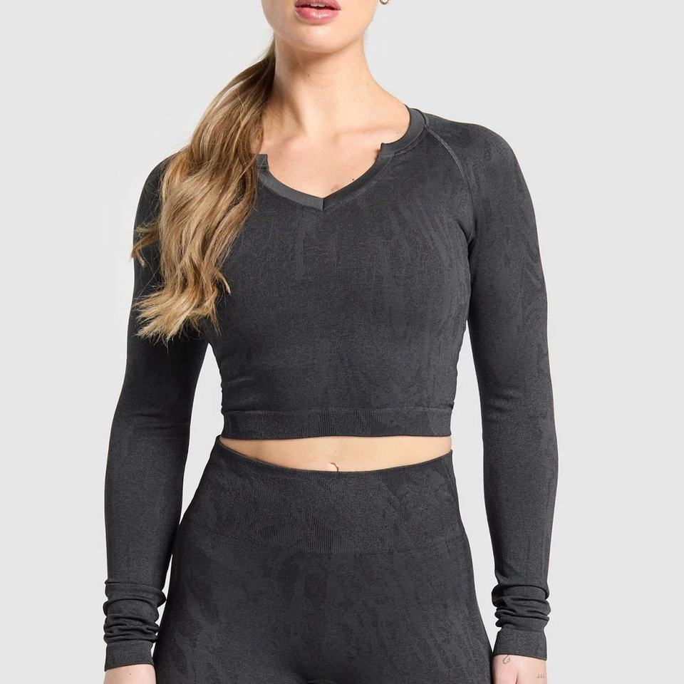 Haut de yoga à manches longues pour femme, logo personnalisé OEM, haute qualité, mode, écologique, grande taille, ajusté, débardeur de yoga pour femme