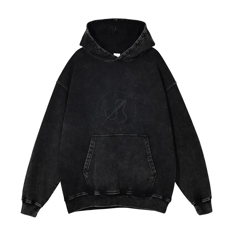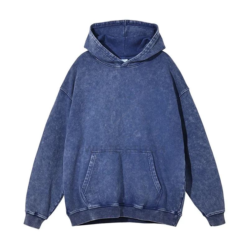 Sweat à capuche à col rond côtelé en coton 100% de haute qualité pour homme avec logo personnalisé OEM, manches longues, surdimensionné, motif uni