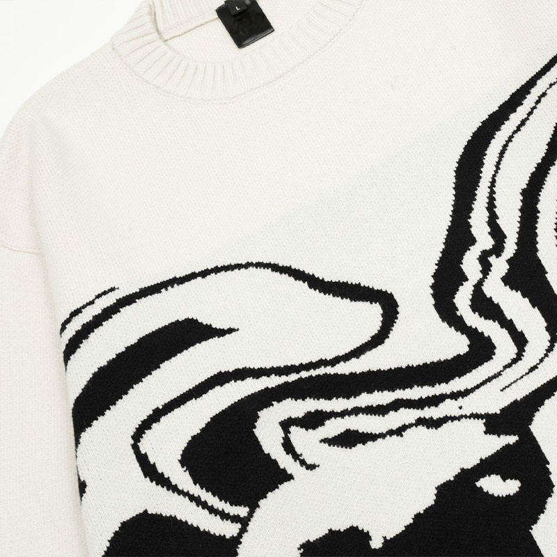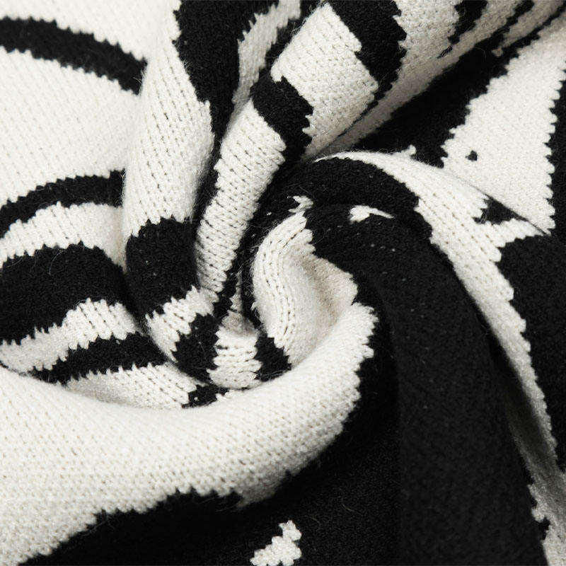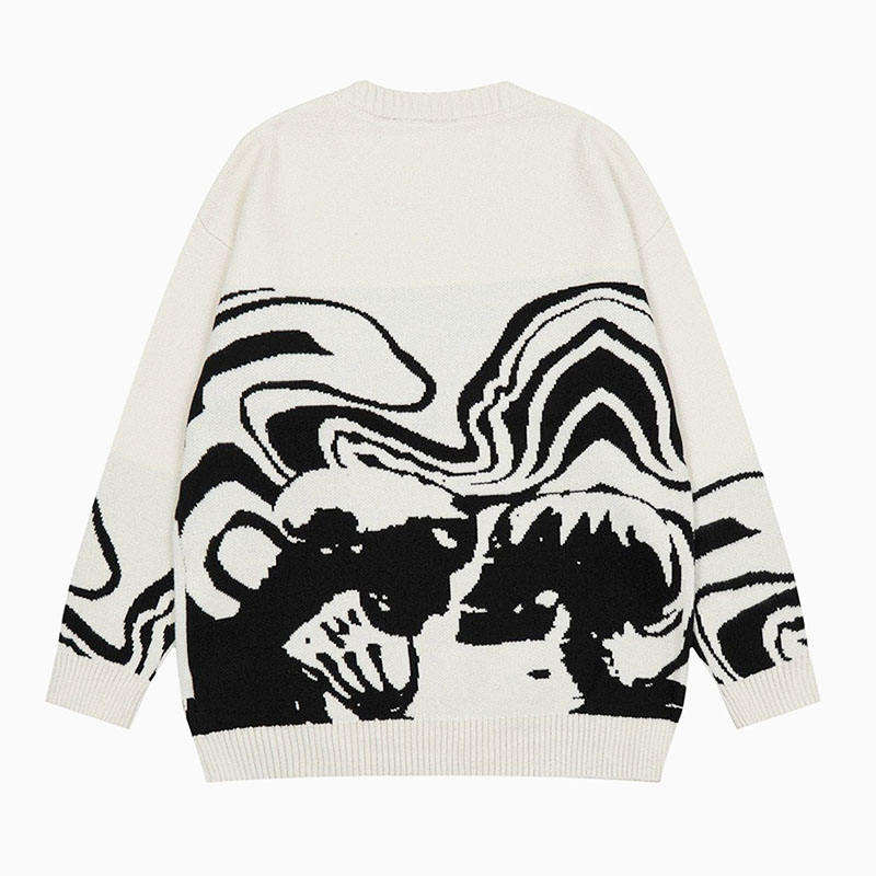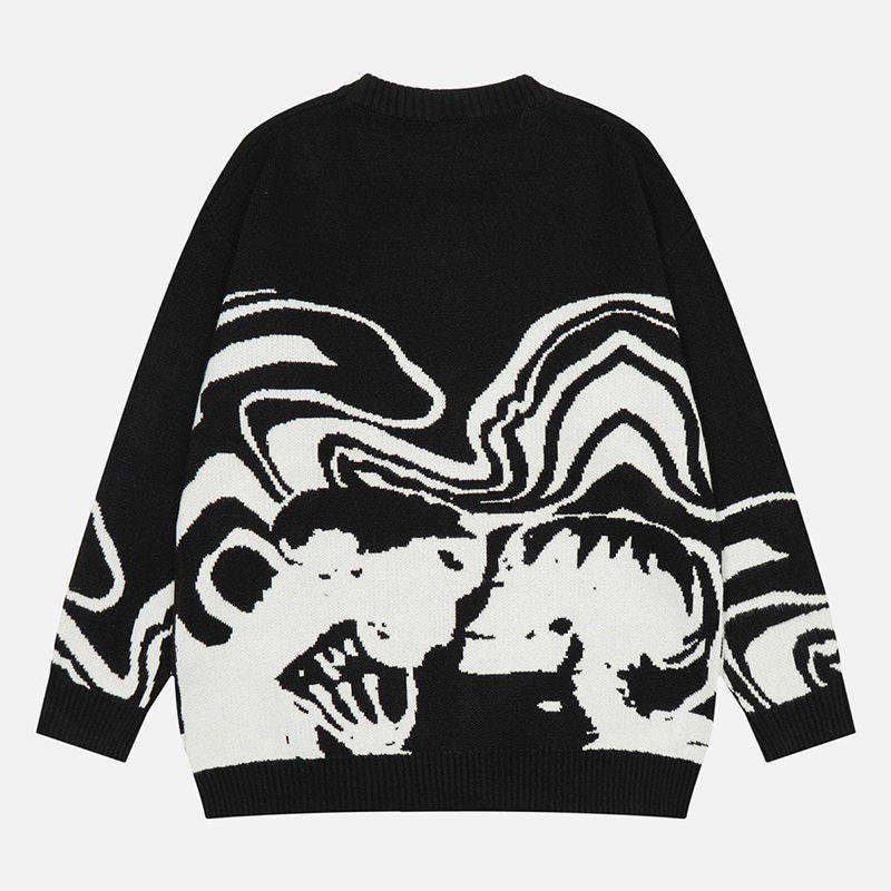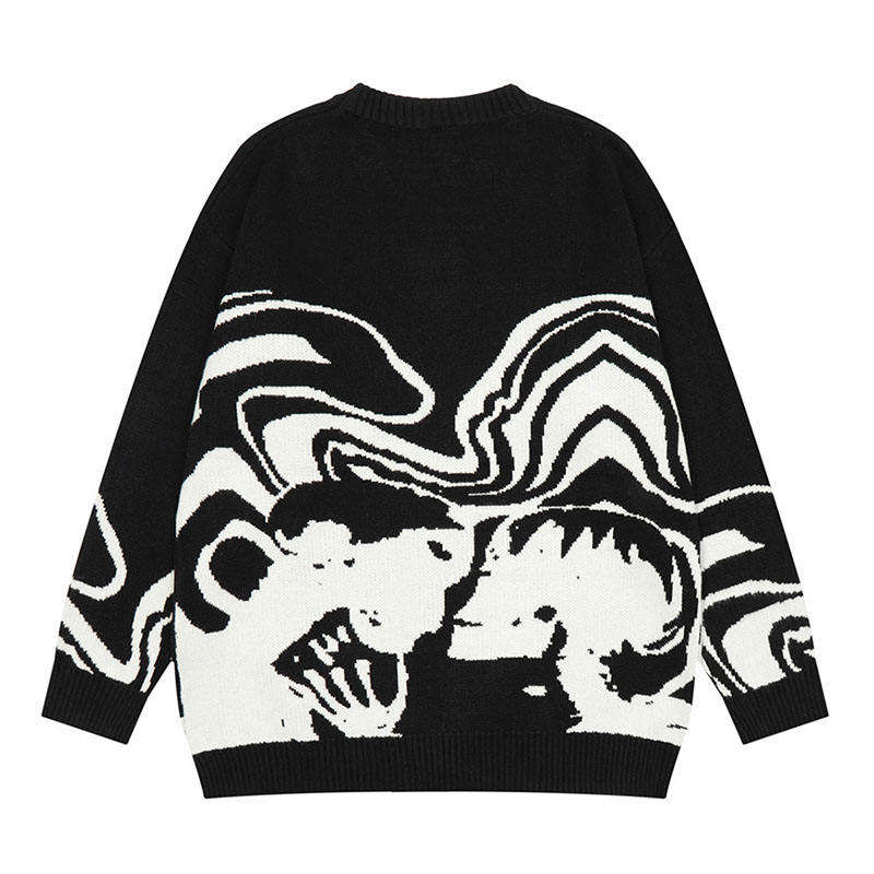 Pull tricoté rétro pour homme avec logo personnalisé OEM, style streetwear hip-hop, en laine acrylique noire avec motif tête de mort blanche pour l'automne