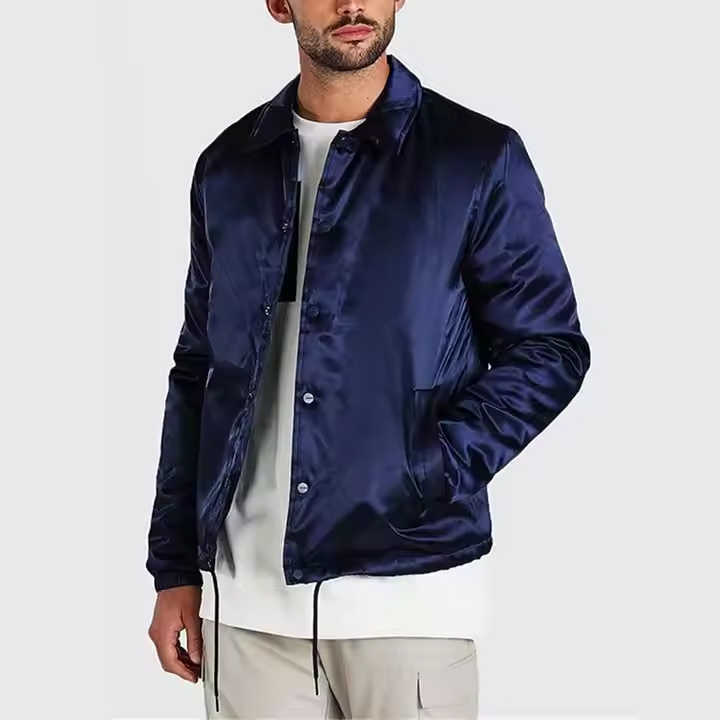 Manteau en satin de style High Street pour hommes avec logo personnalisé OEM avec fermeture à ceinture pour le printemps, l'automne et l'hiver