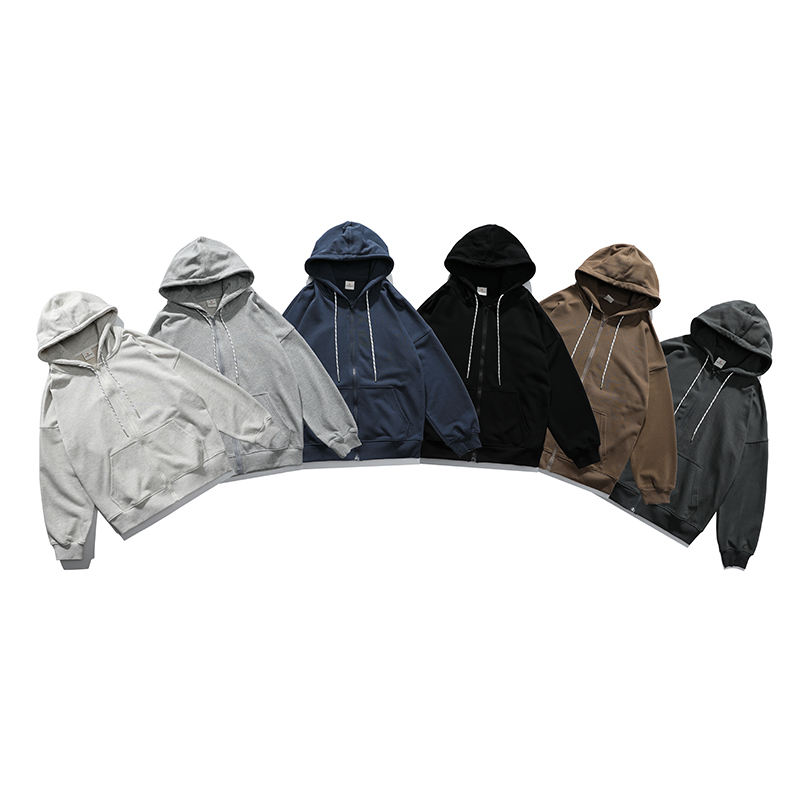 OEM Custom Logo Men's Streetwear Hoodies Heavy Weight Cotton Faded with Double-Ended Zipper Hooded Collar Wash Water Resistant