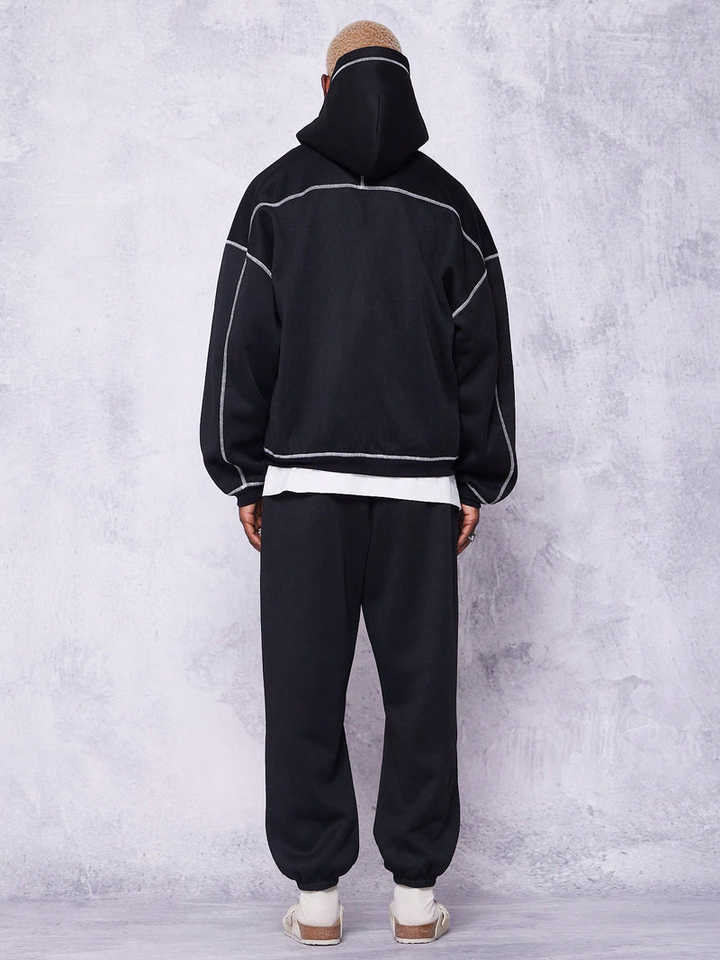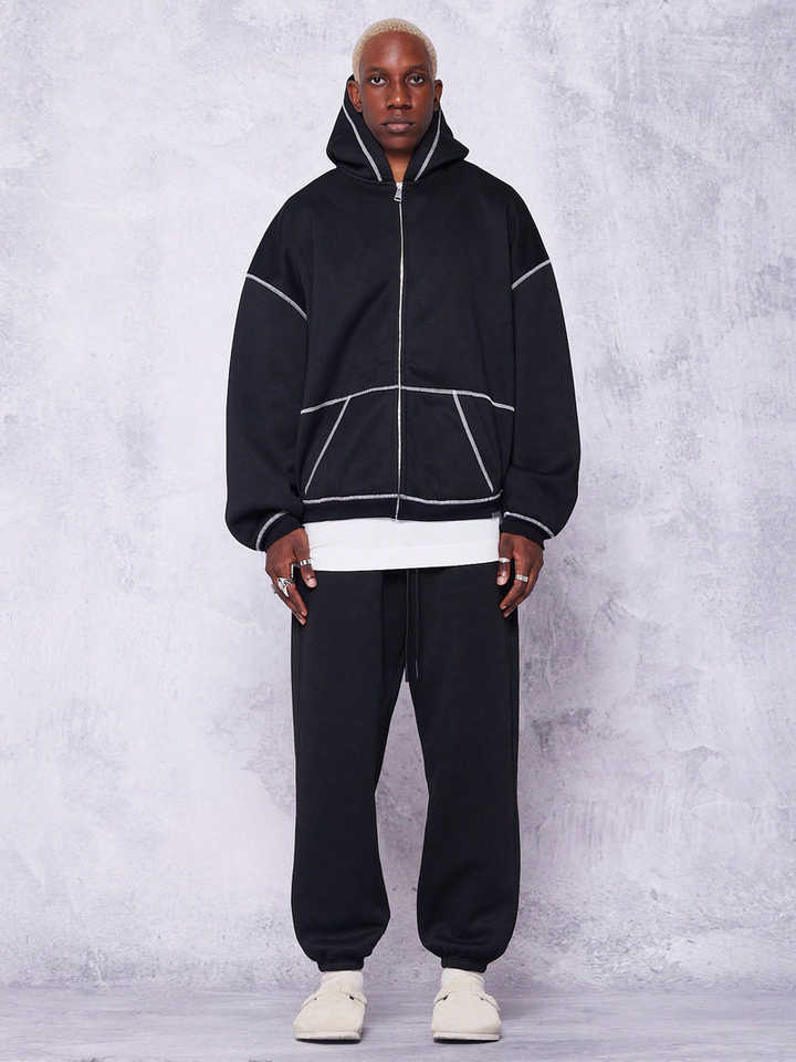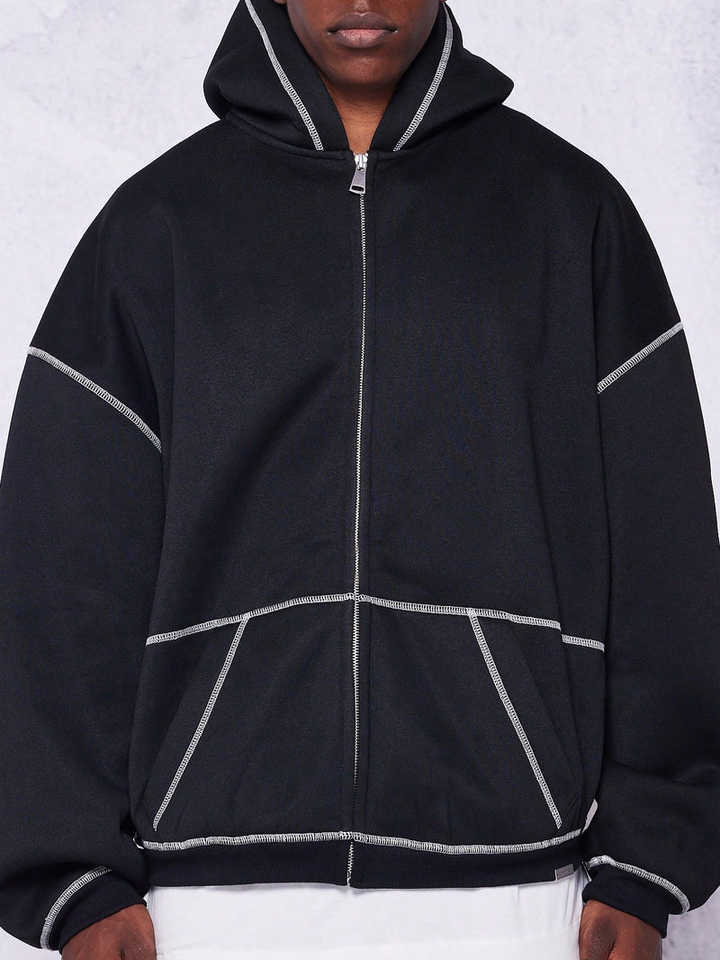 OEM Custom Logo 100% Cotton Oversized Hoodie with Contrast Stitching Stylish Streetwear Zip-up for Winter