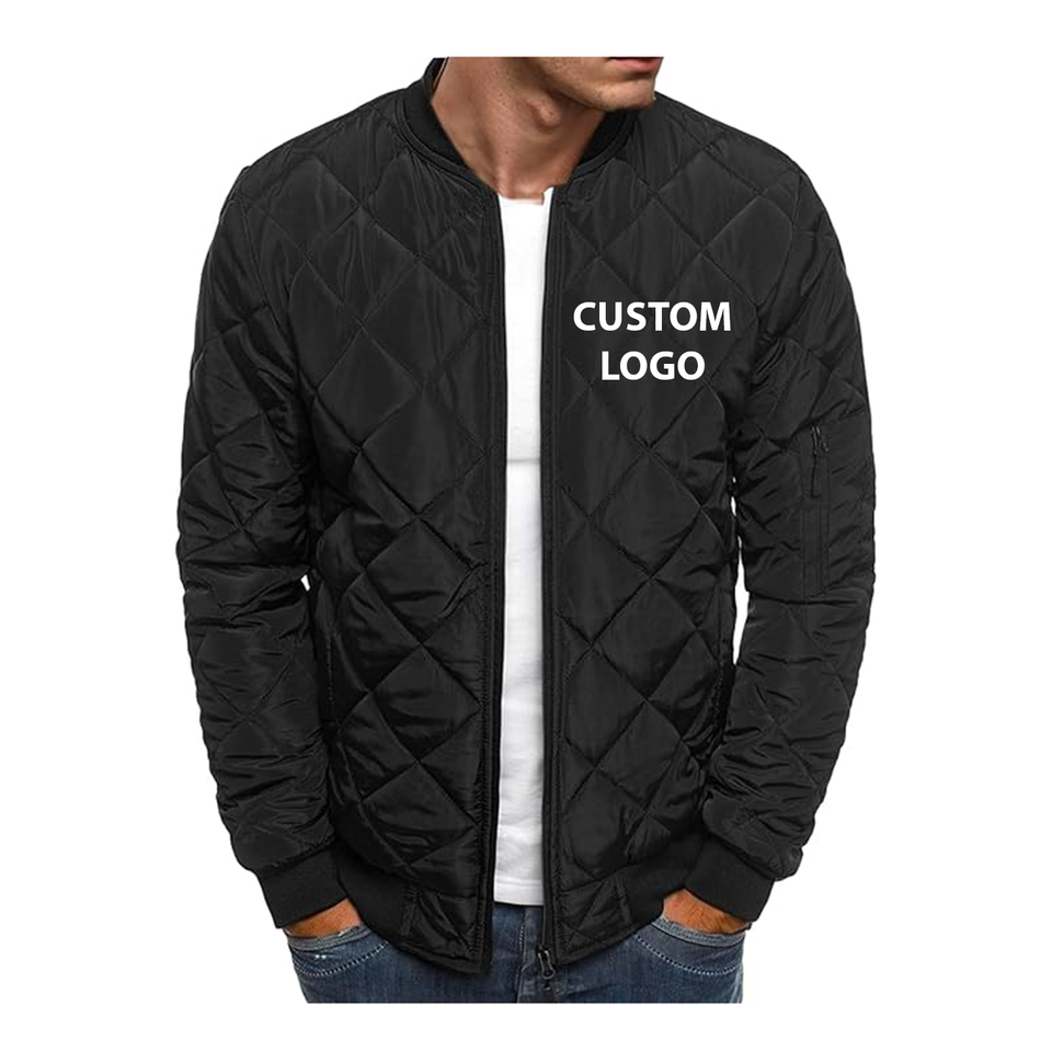 Blouson bomber matelassé personnalisé avec logo OEM, homme, hiver, rembourrage en diamant, léger, décontracté, streetwear, varsity, à capuche, long