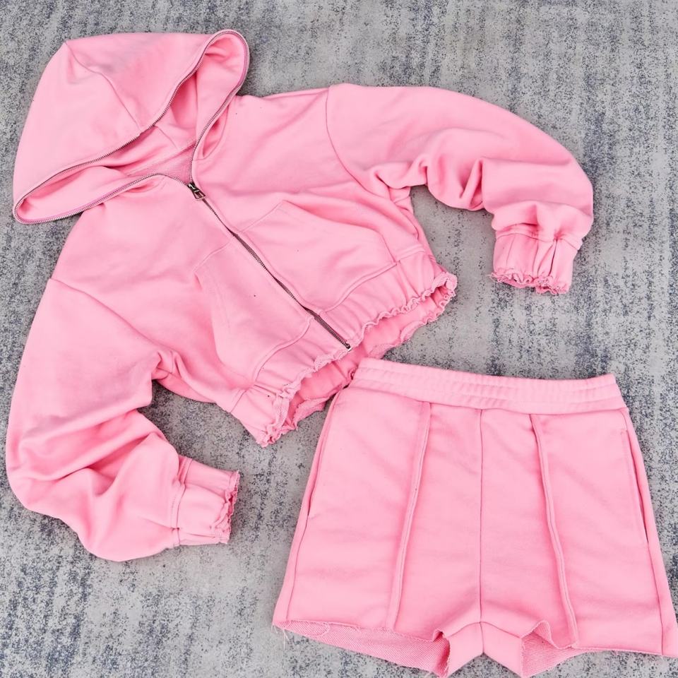 Ensemble de survêtement OEM personnalisé avec logo, broderie de patchs vieillis, sweat à capuche zippé et pantalon de jogging ample pour femme
