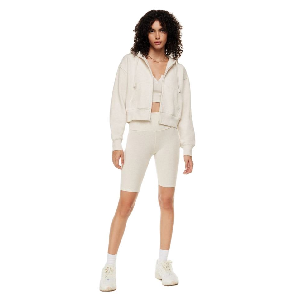 Sweat-shirt à capuche en coton court avec cordon de serrage pour femme, Logo personnalisé OEM, sport, manches longues, entraînement