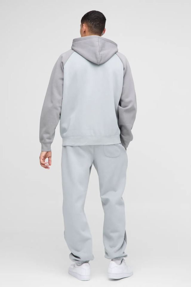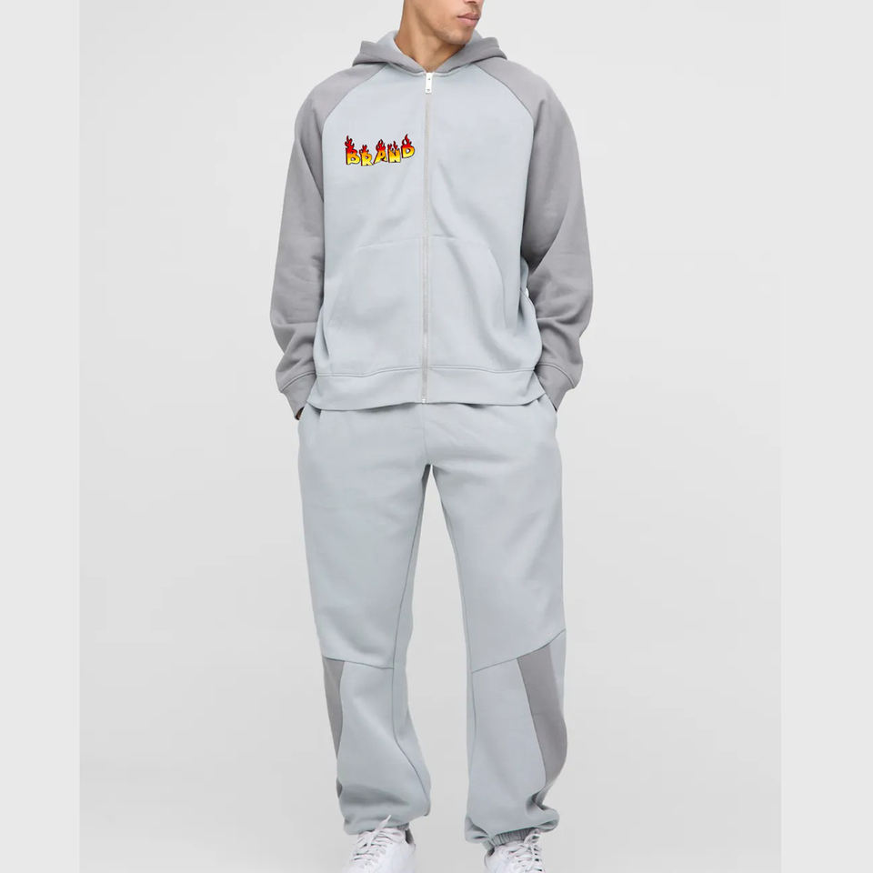 OEM Logo personnalisé Survêtement Baggy Sweat à capuche zippé et pantalon de survêtement à jambe droite pour hommes Ensemble 2 pièces surdimensionné pour homme à blocs de couleurs