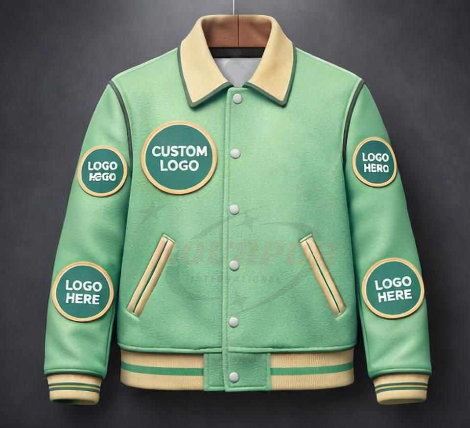 Blousons universitaires personnalisés OEM à col rabattable pour hommes et femmes, surdimensionnés, avec patchs brodés en chenille sur le devant, chauffants, coupe-vent et écologiques