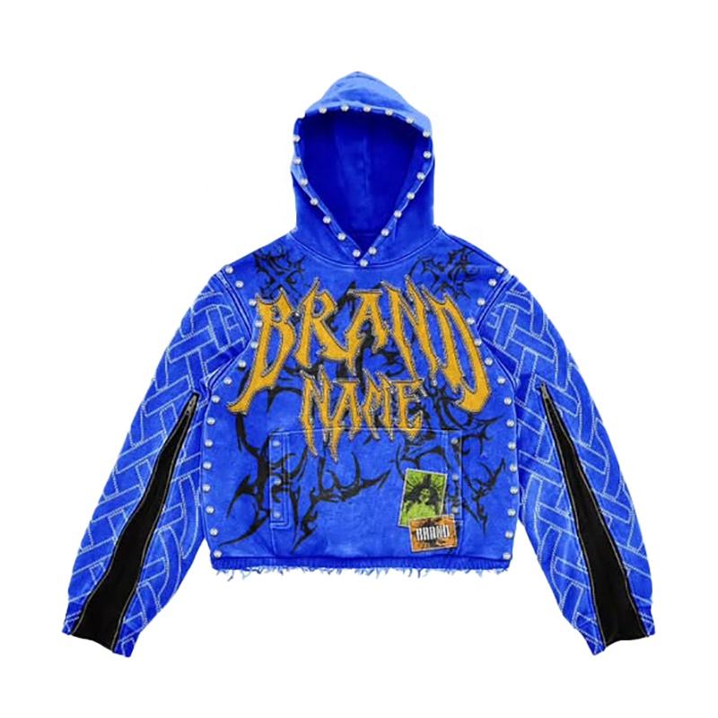 OEM Logo personnalisé Unisexe Poids lourd Hiver Streetwear Survêtement Boxy Cropped Hoodie Baggy Sweatpants Rhinestone Made Pakistan
