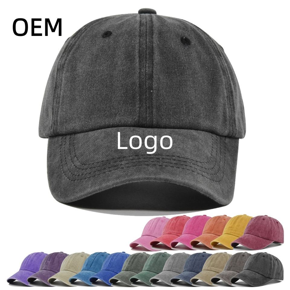 Casquettes de baseball en jean délavé, style vintage, avec logo personnalisé OEM, ajustables, pour hommes et femmes