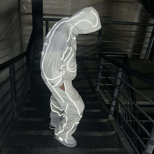 Ensemble survêtement homme hiver personnalisé OEM avec logo, coupe-vent imperméable réfléchissant zippé et pantalon, en nylon et polyester