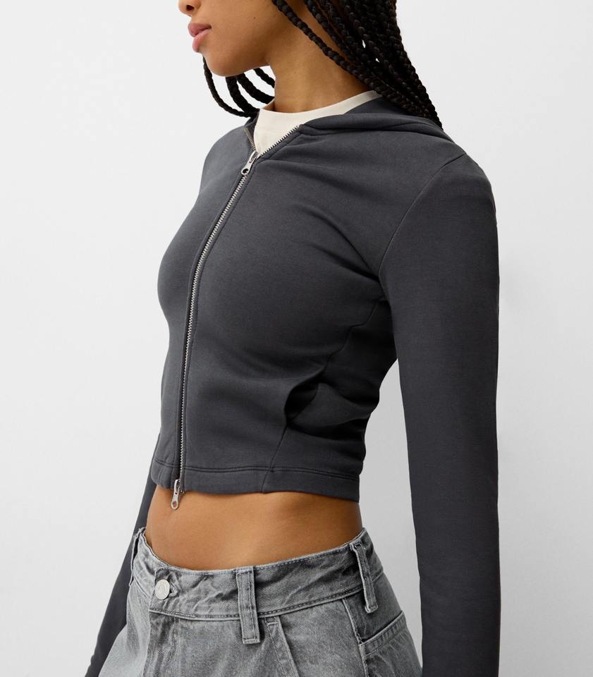 OEM Personnalisé Manches Longues Vierge Épaissie Crop Zip Up Hoodies De Luxe Streetwear Gym Fitness Vêtements Tenues Regular Fit Hoodies