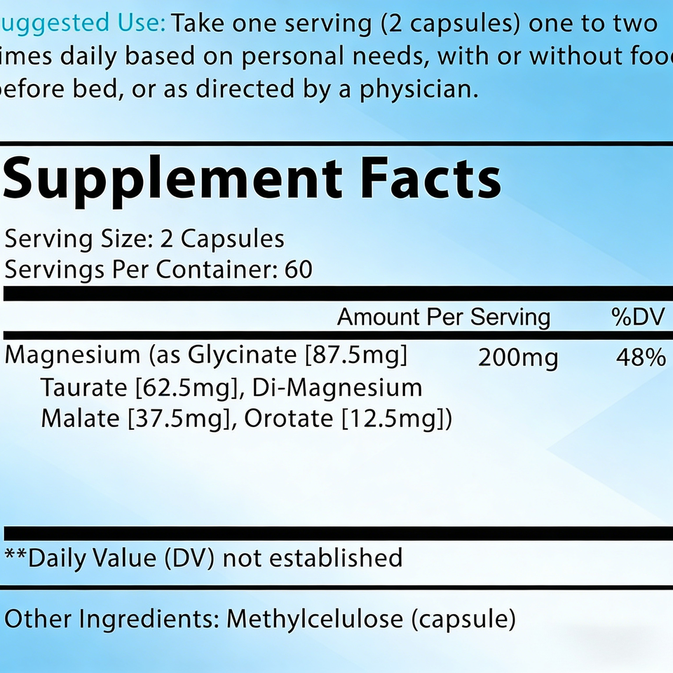 Formule personnalisée OEM de glycinate de magnésium organique, taurate avec malate et orotate, complément alimentaire pour le sommeil et la relaxation pour adultes