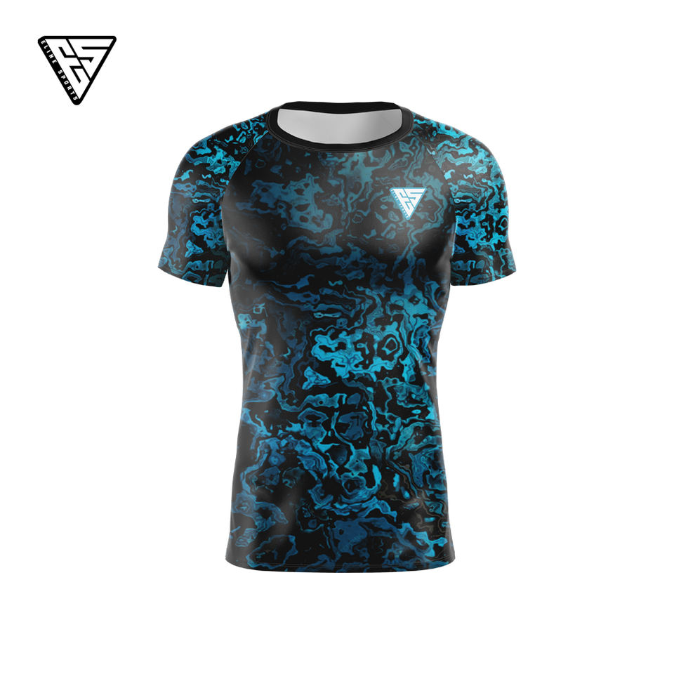 Rashguard d'arts martiaux personnalisé OEM - Impression numérique Spandex/Polyester 220g Manches courtes Vêtement unisexe pour adulte