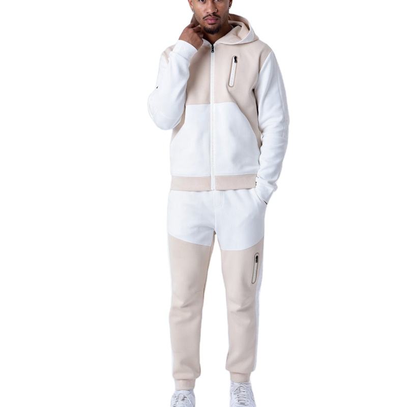 Ensemble de survêtement solide en polaire légère et délavé à l'acide pour hommes, sweat à capuche avec fermeture éclair complète et pantalon de jogging, jogging Colorblock