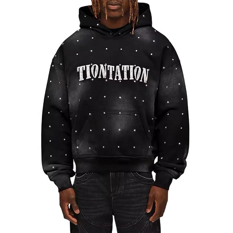 OEM personnalisé hommes lavage à l'acide vintage Streetwear pull à capuche soleil délavé français éponge 3D brodé 100% coton hiver
