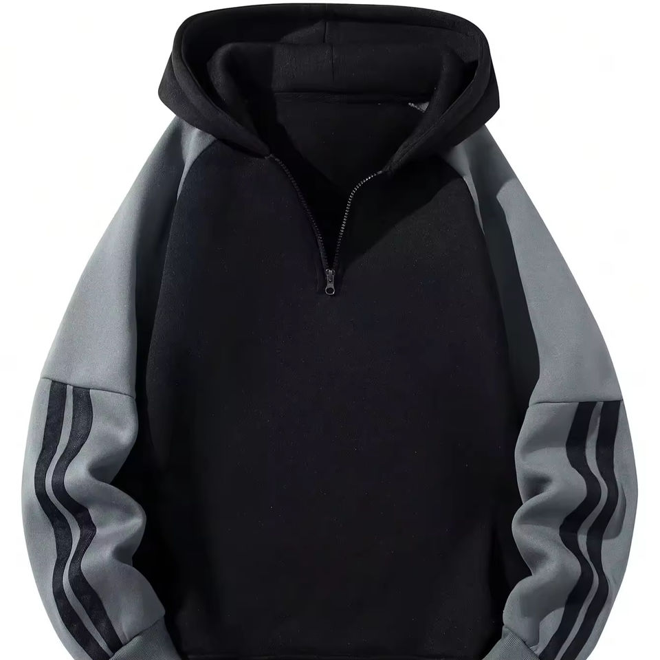 Sweat-shirt à capuche zippé 1/4 pour homme, coupe slim, en tissu peigné anti-boulochage, avec épaules tombantes, patchwork, collection automne, personnalisable OEM
