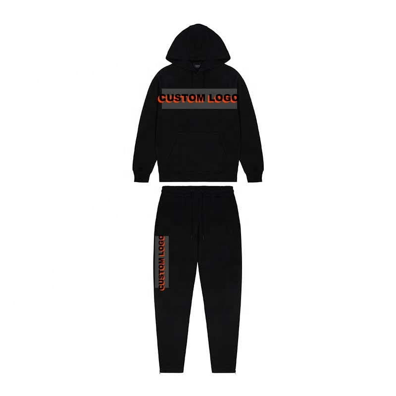 OEM Custom Men's Fleece Hoodie Set Puff Printed Embossed Embroidery Plus Size Track Suit Jogger with Joggers for Winter