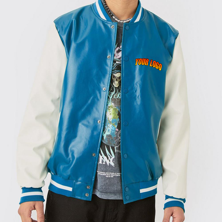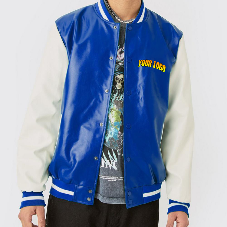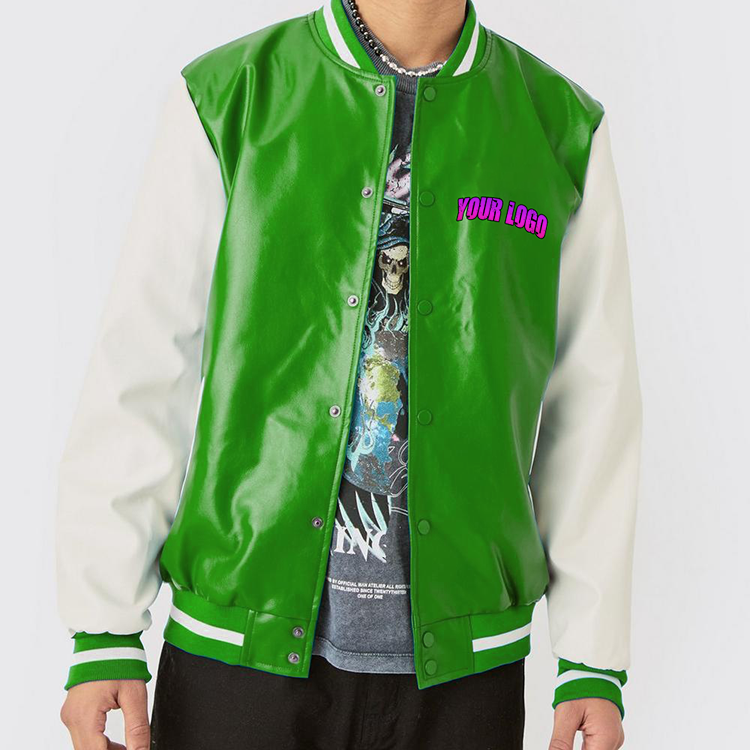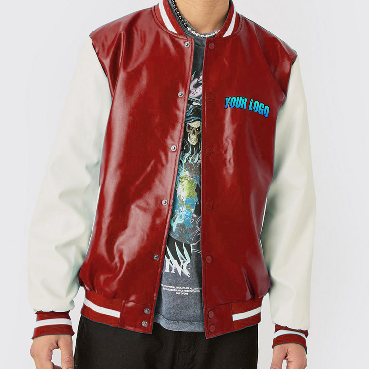 Veste universitaire en cuir à manches longues pour homme, personnalisée OEM, avec fermeture éclair, imperméable, réversible, style streetwear, broderie de patch