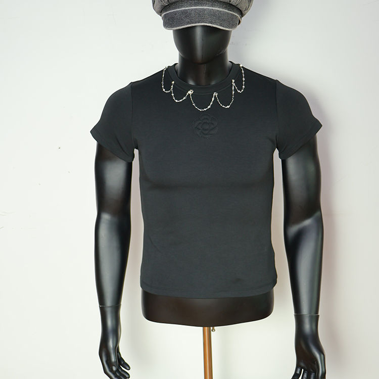 T-shirt sportif personnalisé pour homme, séchage rapide, 100 % polyester, style jersey, uni, anti-humidité, décoré de chaînes en fer