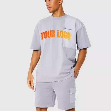 Ensemble t-shirt et short deux pièces pour hommes personnalisé OEM couleur unie vêtements de rue survêtement léger et imprimé avec poches