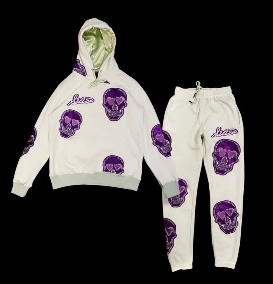 Ensemble de deux pièces de survêtements lourds pour hommes personnalisés par OEM ensembles de pantalons de survêtement avec patch de broderie et de sweat à capuche délavé à l'acide