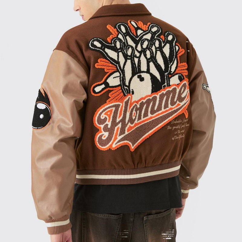 Veste varsity sur mesure pour homme, broderie chenille, manches en cuir, style baseball, veste d'hiver pour collège.