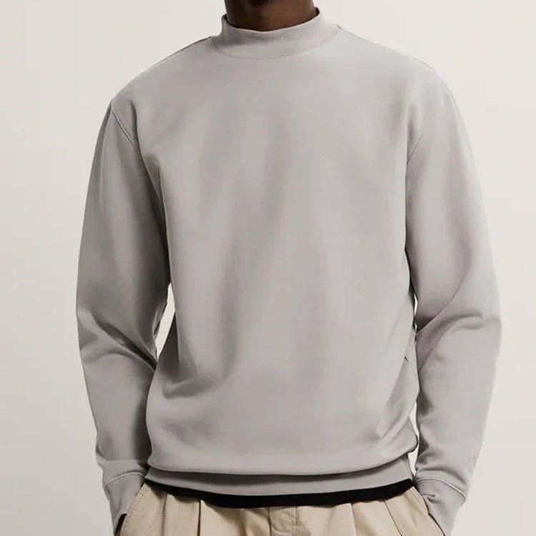 Sweat-shirt à col montant personnalisé OEM avec logo frontal en laine/coton French Terry, coupe oversize à épaules tombantes pour homme