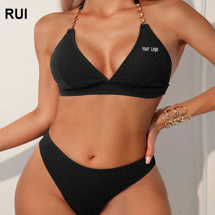 OEM Personnalisé Nouveau Bikini Sexy Luxe à Taille Haute pour Femmes Maillots de Bain de Plage Vacances Deux Pièces Ensembles Bijoux en Cristal Écologique