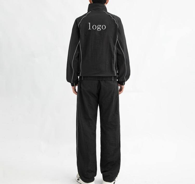 Ensemble de survêtement à décorer avec passepoil en nylon personnalisé OEM ensemble coupe-vent en nylon avec logo personnalisé pour hommes survêtements en nylon coupe-vent sur mesure
