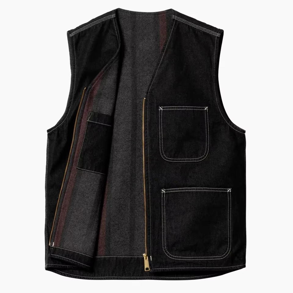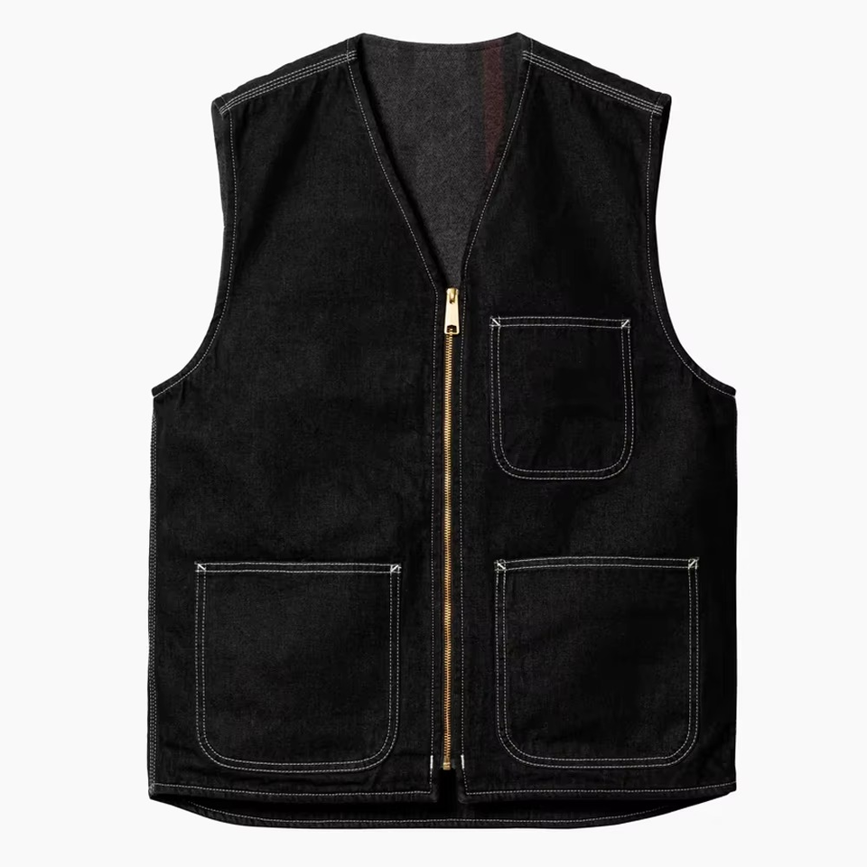 Gilet en jean surdimensionné personnalisé OEM pour homme, avec grandes poches, noir et bleu, veste sans manches de travail, style décontracté urbain