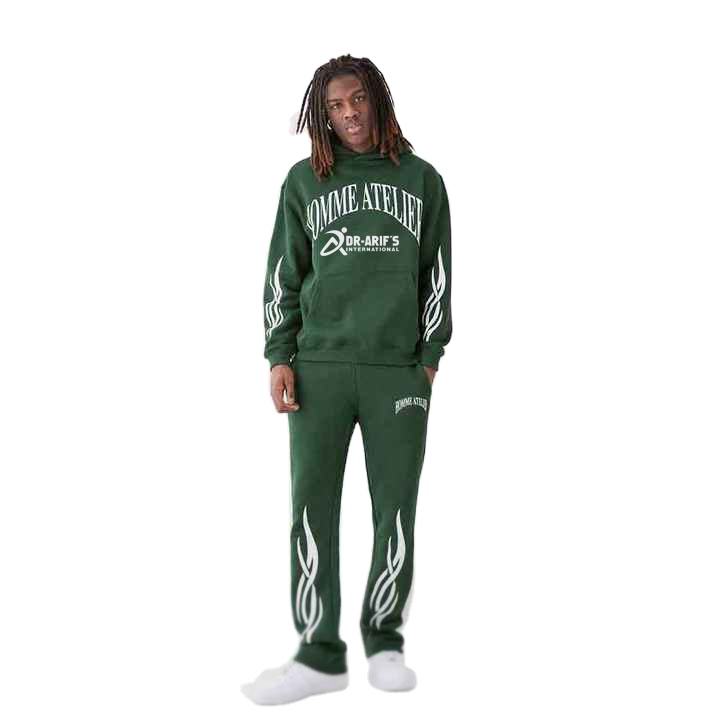 Streetwear décontracté pour hommes, survêtement d'entraînement 2 pièces personnalisé OEM, sweat à capuche surdimensionné, ensemble de pantalons évasés empilés, sérigraphiés pour l'hiver