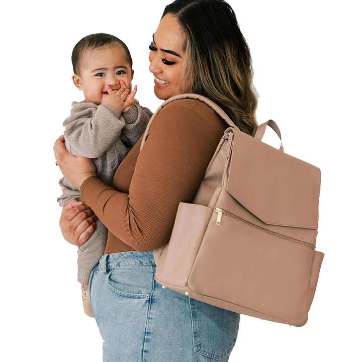 Sac à dos pour bébé en cuir PU personnalisé OEM, grande capacité, sac à langer de voyage pour maman avec USB