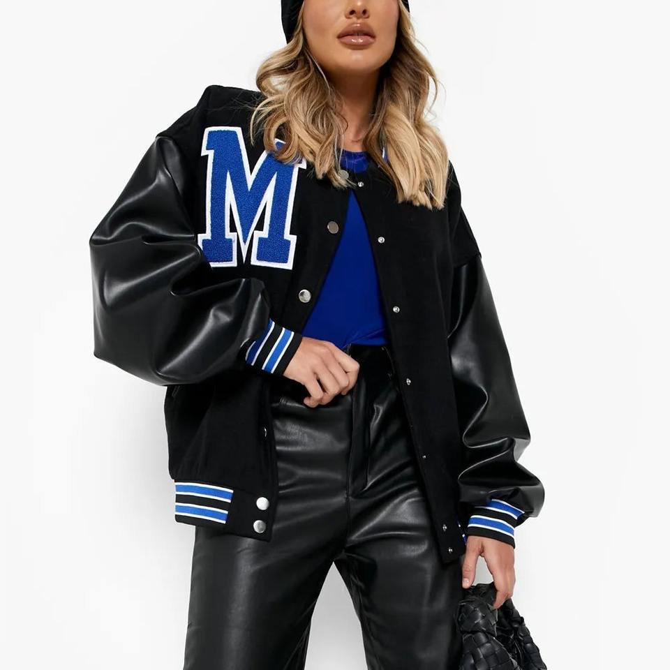 Veste universitaire vintage respirante avec broderie en chenille en polyester personnalisée OEM Vestes de baseball pour femmes à manches en cuir