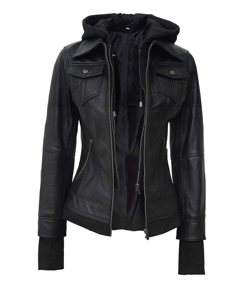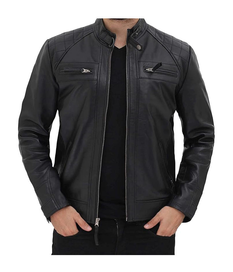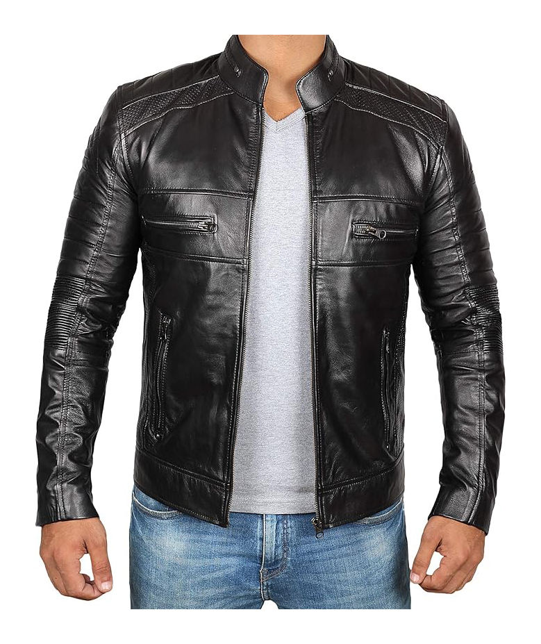 Veste en faux cuir véritable noir pour hommes personnalisée OEM Col à capuche en tissu Sherpa avec décoration en fourrure pour motocycliste