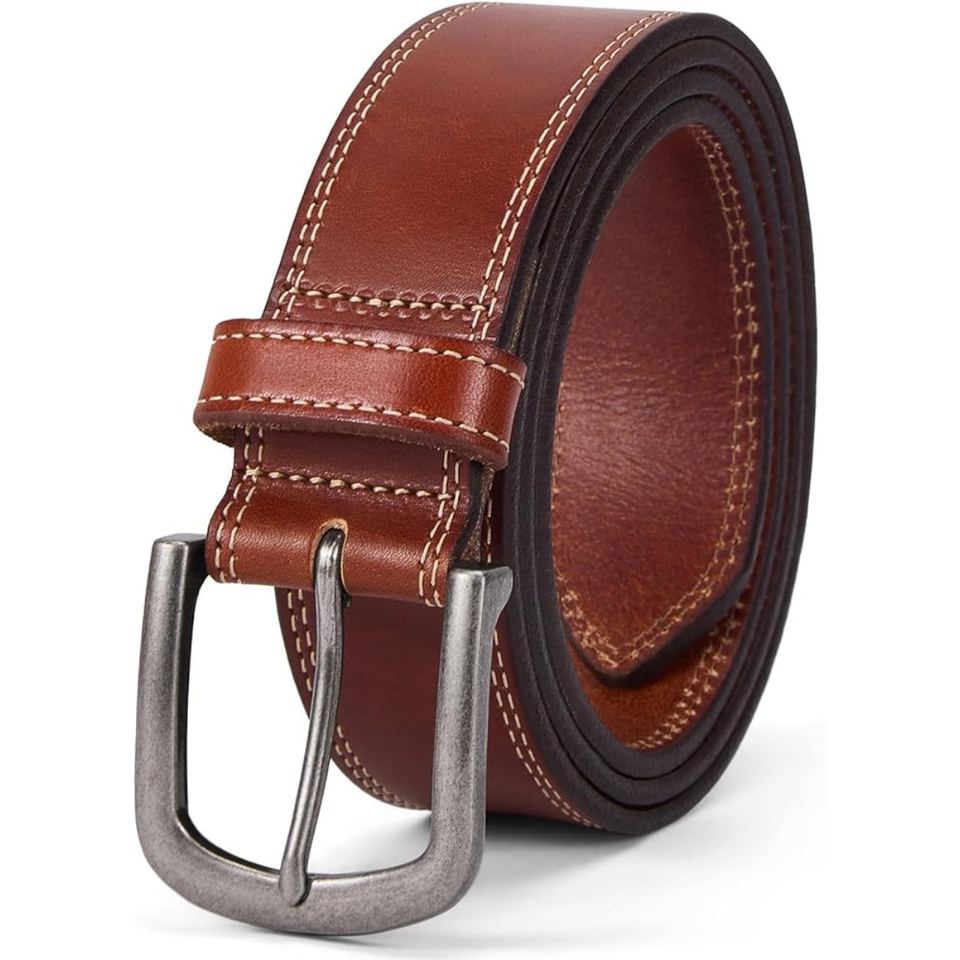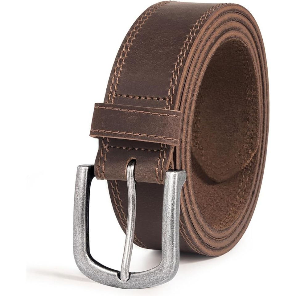 Ceinture en cuir véritable sur mesure OEM pour hommes, sangle en cuir de vachette robuste avec boucle en métal finition antique