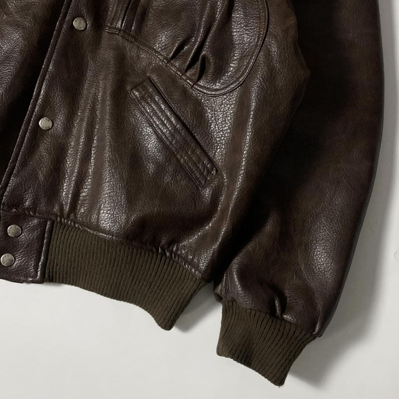 Blouson aviateur Letterman en PU personnalisé OEM coupe normale Veste universitaire en cuir végétalien avec doublure intérieure lisse et en coton pour hommes