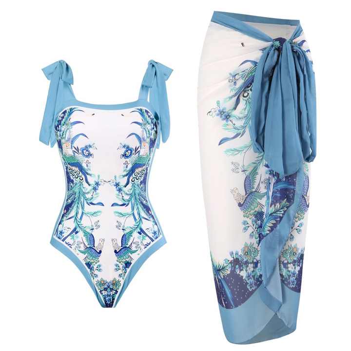 Maillot de bain bikini 2 pièces personnalisé OEM avec imprimé rétro, taille haute et cache-maillot pour femme, tenue de plage