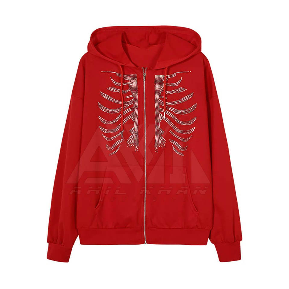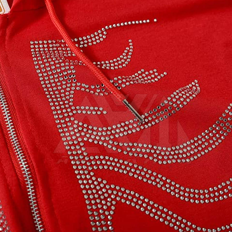 Sweat à capuche personnalisé OEM avec strass, design streetwear en cristal, fabricant en gros