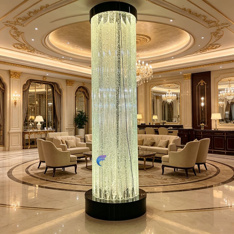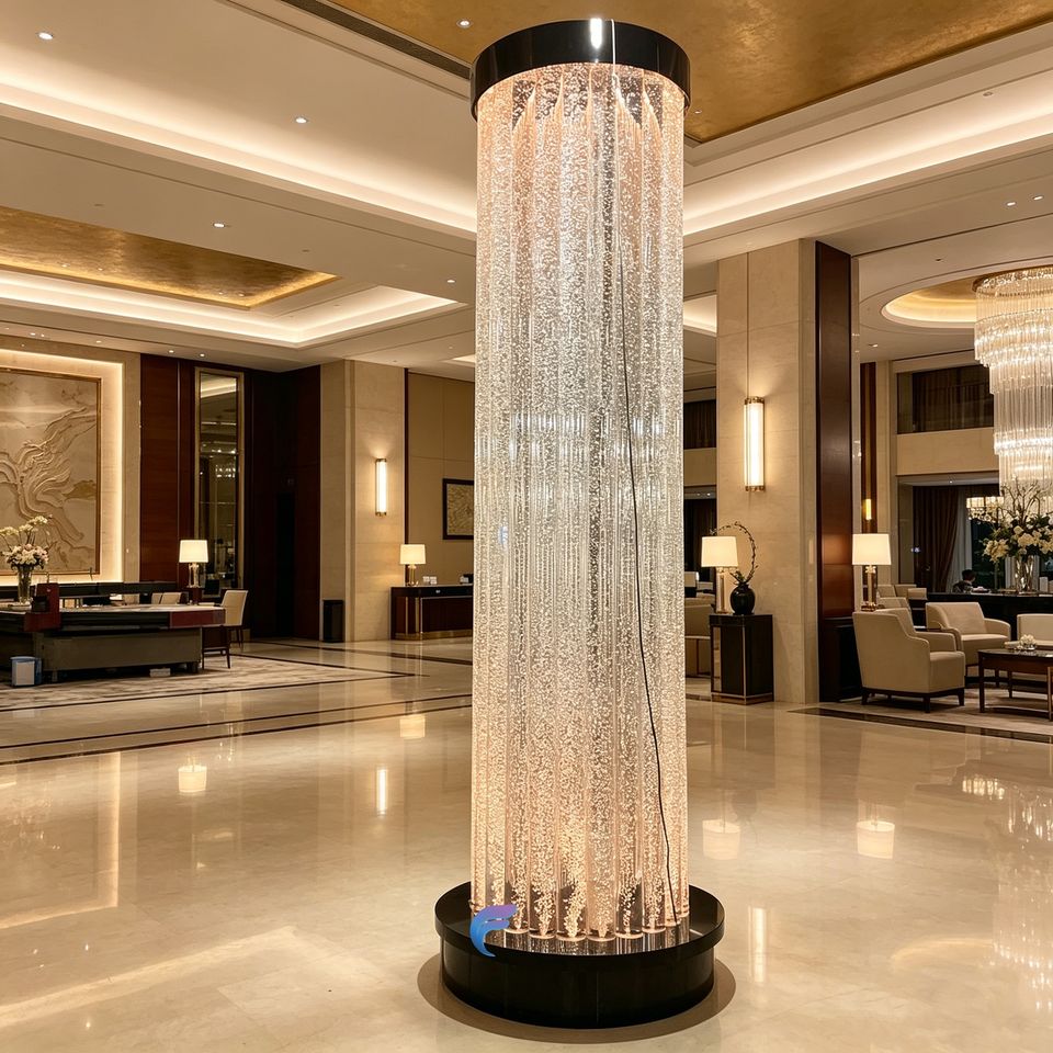 Couvertures de piliers de hall en acrylique rondes personnalisées OEM avec mur d'eau à bulles LED