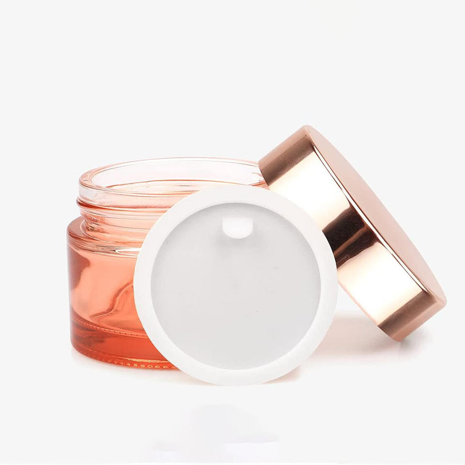 Pot cosmétique en verre rond rose fantaisie personnalisé OEM 15g 30g 50g 100g pour crème corporelle et visage avec bouchon à vis rose doré