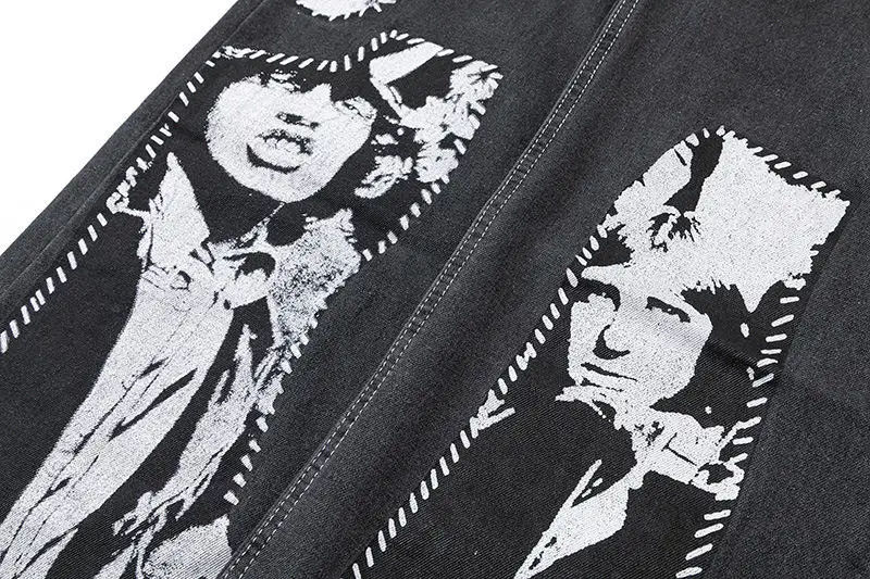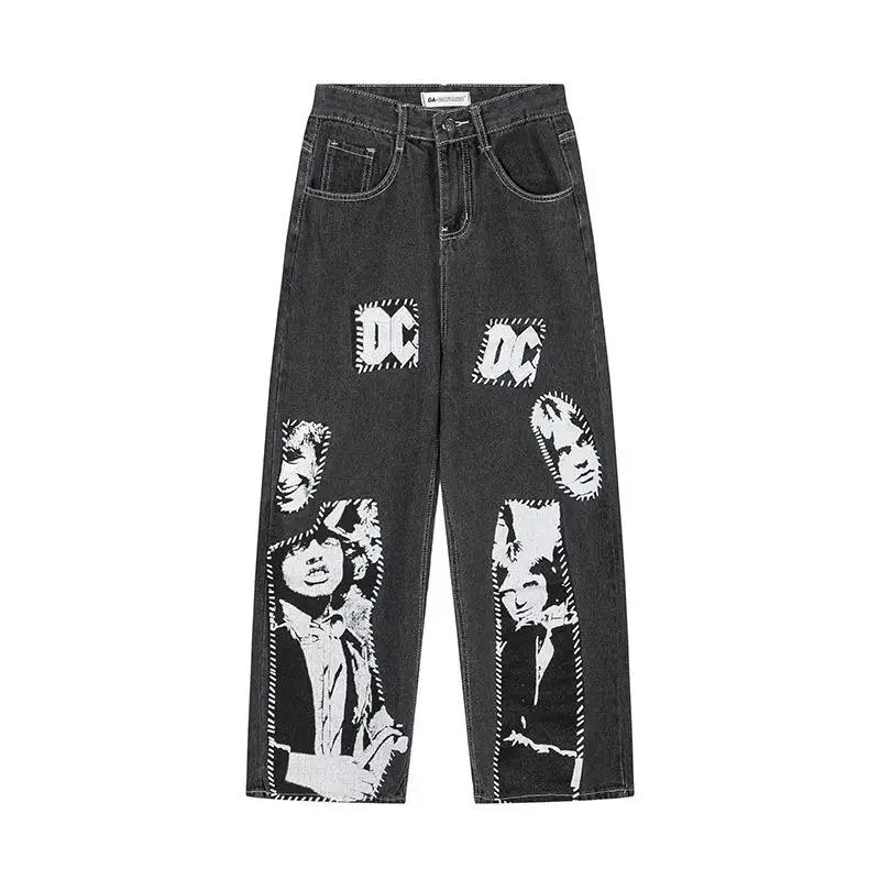 Jeans amples pour hommes, respirants, de qualité supérieure, avec impression personnalisée OEM, motif personnalisé, jeans amples en denim respirant pour hommes