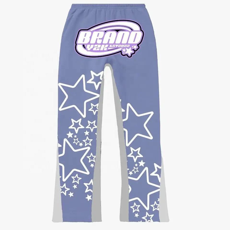 Pantalon évasé streetwear avec écusson personnalisé en mauvais état Pantalon de survêtement évasé oversize pour hommes Pantalon de survêtement en coton éponge français empilé pour hommes