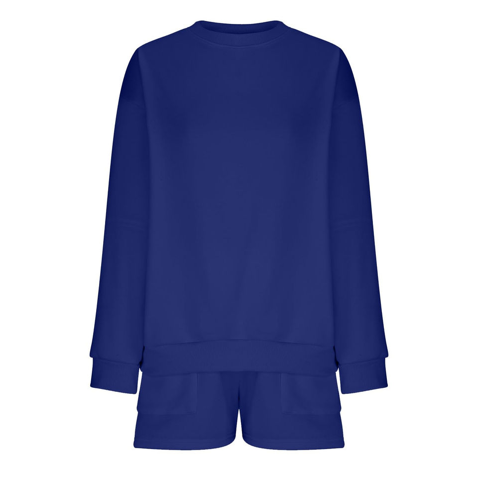 OEM Custom Sport Sweatshirt Shorts Women's Long Sleeve V Neck Premium Quality Sweatshirt Set Women Winter Clothes