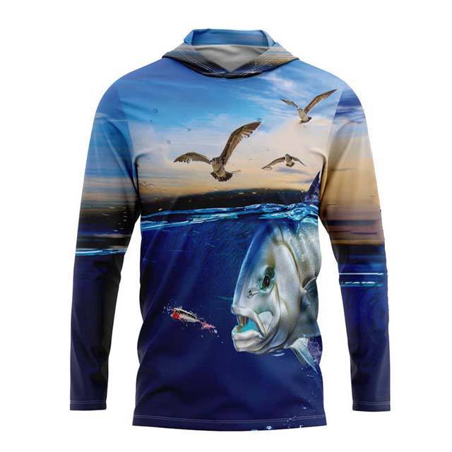 OEM Sublimation personnalisée Chemises de pêche pour hommes UPF 50 + Protection solaire Respirant Anti-UV Manches longues Séchage rapide Vêtements de pêche