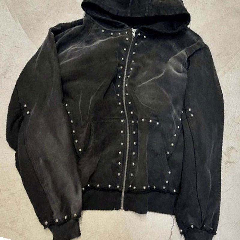 OEM Personnalisé Hiver Écologique Délavé au soleil Zippé Molleton bouclette Streetwear Fonctionnel Délavé à l'acide Homme Rivets Épais 100% Coton
